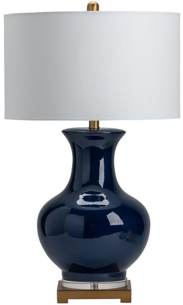 The Crestview Collection Hamilton Urn Table Lamp has a classic design that will complement your home decor style. Made of ceramic, the body features a deep blue glazed finish. An antique brass base with crystal accents supports the elegant body, giving way to the white linen drum shade.Read More