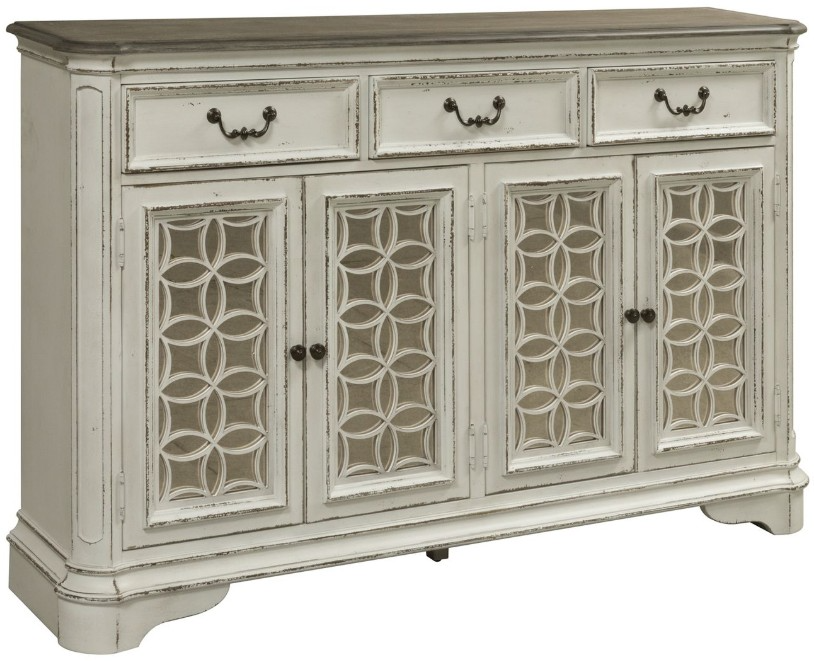 Make entertaining easy and stylish with the Magnolia Manor hall buffet. Use this piece in the entryway as a statement piece or as a hosting buffet in your dining room. Featuring a blending of European influences the hall buffet is crafted of poplar solids and white oak veneers.Read More