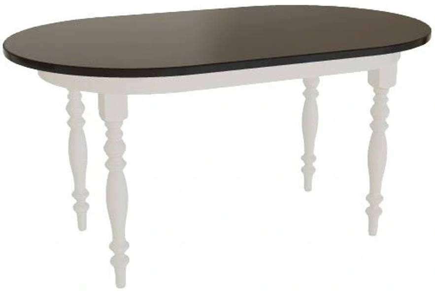 Shown in: 408 Ebony stain (top), 1P White paint (base), L17 Farmhouse leg, Rustic Cherry wood