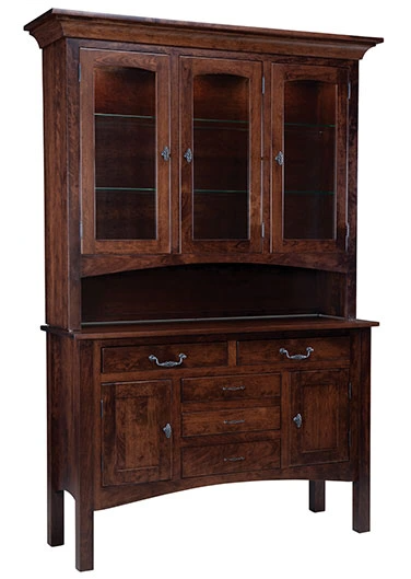 The Highland Hutch features two adjustable glass shelves that extend all the way. Hutch with winrac or plahol includes two adjustable glass shelves behind each door. It is standard with touch lighting.Read More